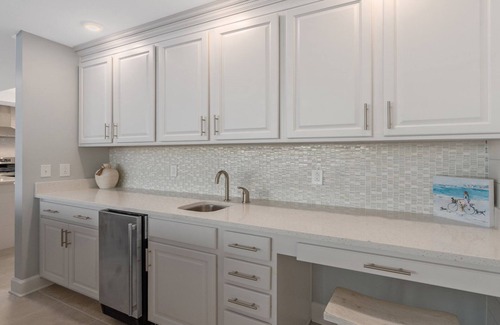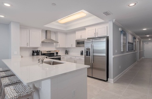 Amenities are abundant at this Phoenix Gulf Towers condo: the unit is appointed with full-size appliances, wet bar with ice maker, 75” flat screen SMART TV in living room and a flat screen 55" SMART TV in the master, and a 55" Smart TV in the 2nd bedroom, laundry room with full size washer and dryer. There is a King bed in the master, a Queen and a Full over Full bunk in the 2nd bedroom, and a sleeper sofa Queen in the living room for sleeping up to 10.