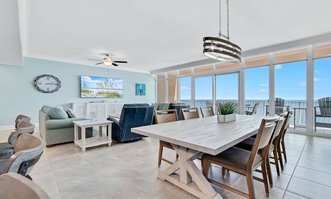 Your celebration will be complemented by a wealth of features available at this beautiful condo. Enjoy over 1,550 sq ft of newly furnished space complete with a keyless entry for convenience. The living area boasts floor-to-ceiling windows that frame the spectacular beach view while providing ample natural light. You will also find a state-of-the-art fitness center, an outdoor zero-entry pool connected to a lazy river complete with a thrilling water slide, and multiple areas for your guests to relax and unwind. With sleeping arrangements for up to eight guests and high-end appliances throughout the unit, every detail caters to comfort and elegance.