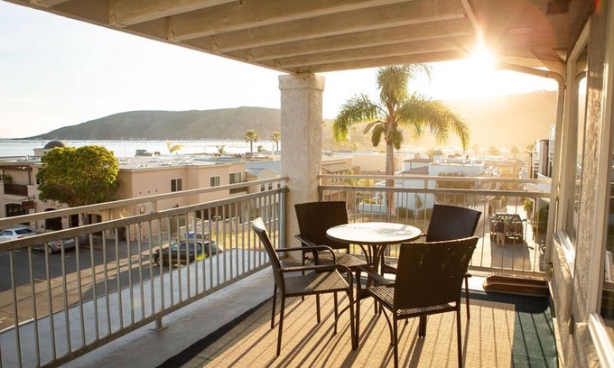 Just one block to the beach and boardwalk. Condo for Rent, View the broad panorama of Avila Beach, the Avila Pier, Port San Luis, foothills and the horizon from this 2 bedroom, 2 bath unit that sleeps up to 6 people. Private deck with views of Avila Beach and San Luis Bay. King bed in the primary bedroom, and a Queen bed in the second bedroom. Living Room is equipped with TV, wireless internet, Queen sofa sleeper or air-bed, whichever you prefer, for additional sleeping in the living room. Washer and dryer on-site. Dining Room has circular dining table for 6 plus 2 bar stools. No BBQ.