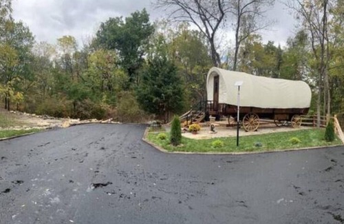 New Conestoga 1843 Wagon is located in Peculiar. New Conestoga 1843 Wagon provides accommodation, featuring Bedding/Linens, Wellness Facilities, Fireplace/Heating, among other amenities. This Cottage features Bedding/Linens, Wellness Facilities, Fireplace/Heating, to make your stay a comfortable one.