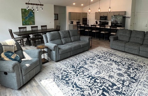 Newly constructed 3200 sq ft open concept lake vacation house. No need to worry about renting an older cabin that can't stay cool in the summer!