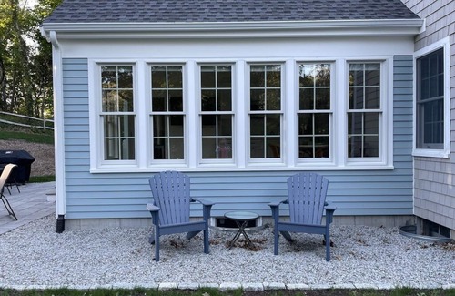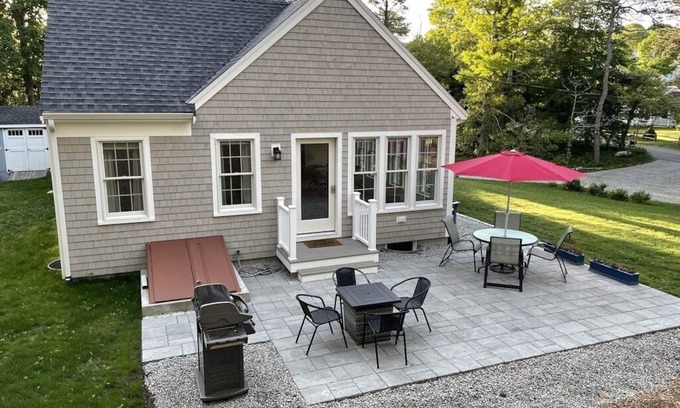 Walk or ride along the Cape Cod Rail Trail to sandy Linnell Landing beach (< 1 mile), Nickerson State Park (1/3 mile) and Ocean Edge Resort (<1 mile) from this sunsplashed apartment (similar to a Condo or Flat). Access trail to the Cape Cod Rail Trail bike path is at the cul-de-sac. Everything is brand new and very private. Enjoy the lovely private patio with a gas grill and fire pit table. Relax in the comfortable furnishings and central A/C. The apartment is an attached addition to the main house. All rooms and the patio shown belong to the apartment and the only shared space is the garden/yard/play area.