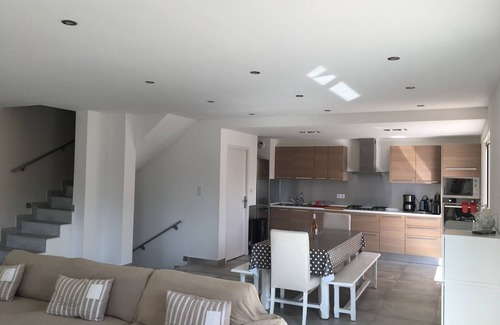 I wanted it to be perfectly integrated into my village, but at the same time contemporary, spacious, bright, open to the scrub and equipped with all modern comforts (WiFi, air conditioning, swimming pool 2.5m x 4m, etc.). The house consists of 4 bedrooms: downstairs a master suite with a 160x190 cm bed and separate WC. Upstairs 3 bedrooms, a bathroom and separate WC. On the middle floor a large living / dining room and kitchen with a storage room. The cleaning is included at the end of the stay (except the kitchen) as well as the sheets and towels provided with beds made on arrival.