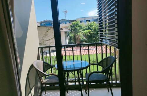 The most convenient location in Huahin. Every place is within walking distance, either restaurants, bars, super market, hospital, shopping mall, Huahin night market and Beach. The apartment is brand new with 35 sq.m2, separated between bed room and kitchen. We have balcony with table and 2chairs. The room is located in south direction with street view, not the sea view but you can walk to the beach within 5 mins.