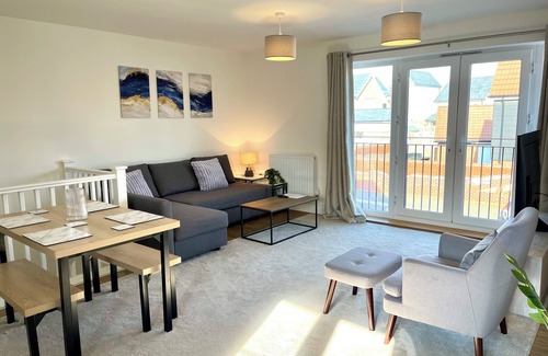 Welcome to your perfect getaway! This beautiful, brand new two-bedroom, two-bathroom house is now available for your stay in Bishops Stortford. Ideal for small groups of pilots or contractors, this cosy retreat comfortably accommodates up to 5 guests.