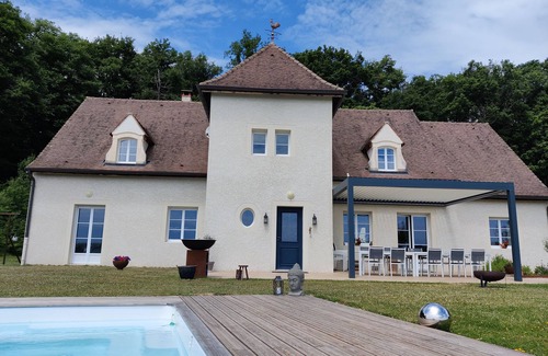 New house of 340m2 comfortable, mixing modern equipment (floor heating, air conditioning, fully equipped kitchen ...) and charm of the old (Burgundy stone, ceilings French ...)