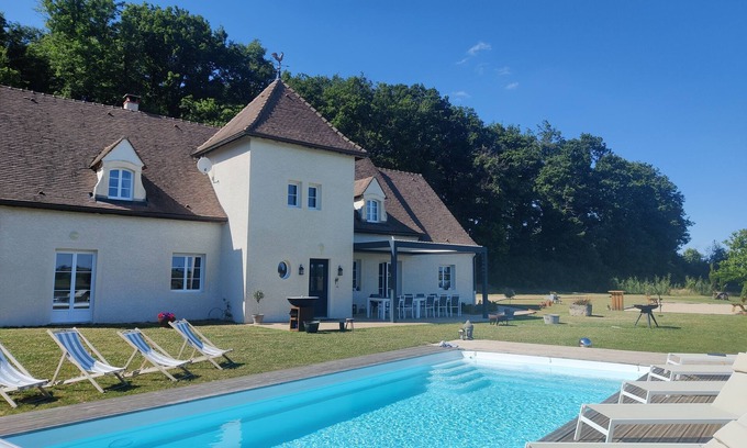 Best-rates for the Saint-Martin-d'Auxy house starts from $1,074 per night with includes Parking, Private Pool, Internet, Laundry, Sports/Activities, Bedding/Linens, Pool, Accessibility, Security/Safety, Entertainment, Kitchen, Wellness Facilities, Child Friendly, Fireplace/Heating, Air Conditioner, TV, View, Ocean View, Balcony/Terrace, Barbecue/Outdoor Cooking with all other amenities. Perfect for Weddings is committed to ensuring every guest experiences a comfortable and extraordinary stay, whether planning a romantic getaway, a honeymoon, a pet-friendly stay, or celebrating with the entire wedding party.