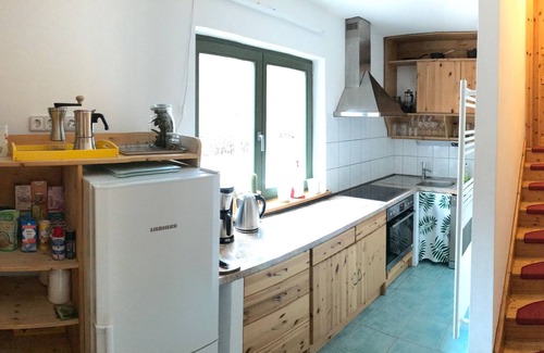 The newly renovated, cozy holiday home "Naturliebe" offers its guests three bedrooms for 2 persons on three levels, a large living room with fireplace, a bathroom and a fully equipped kitchen. From the living room you can enter the terrace, where up to 6 people can eat together at the garden table, next to the barbecue and the fire bowl.