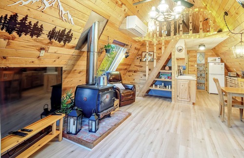 New! Cozy 2-bedroom A-Frame with Hot Tub, Fire Pit, WiFi, AC and VIEWS! is located in Indian Mountain. New! Cozy 2-bedroom A-Frame with Hot Tub, Fire Pit, WiFi, AC and VIEWS! provides accommodation, featuring Hot Tub, Internet, Kitchen, among other amenities. This Cabin features Hot Tub, Internet, Kitchen, to make your stay a comfortable one.