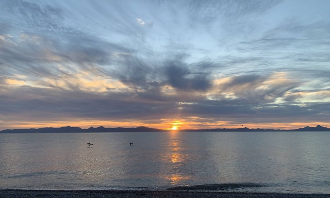 One block away starts a wide sea side unpaved boardwalk. Right along the beach, the trail offers gorgeous views on the islands and mountains - especially with the sunrise and sunset lights.