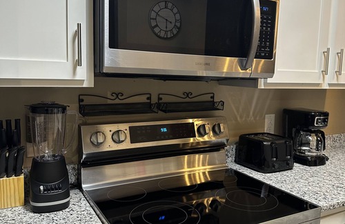 Enjoy a stylish experience at this centrally-located place. 2bd/1b with an open floor plan! Freshly redone with Lux cozy taste. King and queen bedrooms with smart TVs in each room. Covered/screened patio with cozy lighting. Outdoor and indoor games for guest to enjoy!