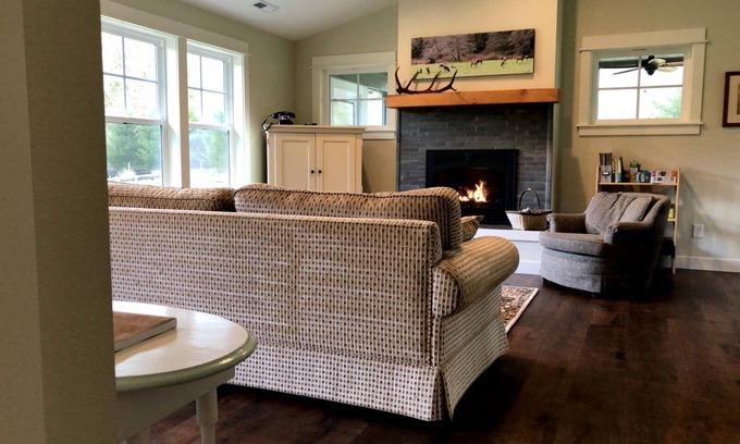This newly constructed home is airy and light, kid and dog friendly with a welcoming great room, complete kitchen and screened porch. It's a great gathering place for friends and families to escape the speed and noise of the city and find the healing peace of nature and silence. It's also a great place to host mini retreats or workshops.