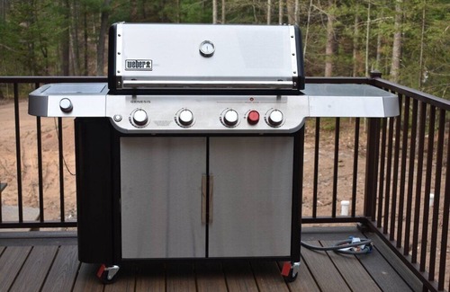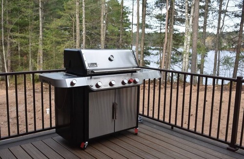 Large Deck Overlooking Lake with Weber natural gas 4 burner Genesis grill with seer zone and side burner
