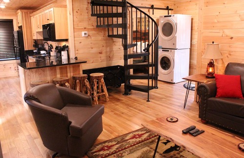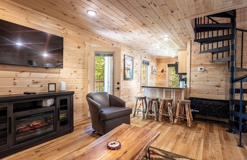 This charming cabin features modern amenities designed for your comfort and convenience. You will enjoy two spacious king-size bedrooms, each with its own flat-screen TV, plus a delightful nook with twin bunk beds, ideal for younger guests. A fully stocked kitchen awaits your culinary adventures, complete with full-sized appliances, a Keurig coffee maker, and a gas grill on the expansive decks. Unwind in the four-person hot tub beneath a starlit sky after a day of exploring, or gather around the electric fireplace in the living room for cozy evenings together. With convenient access to walk-in tile showers and laundry facilities, you’ll have everything needed for a seamless stay.