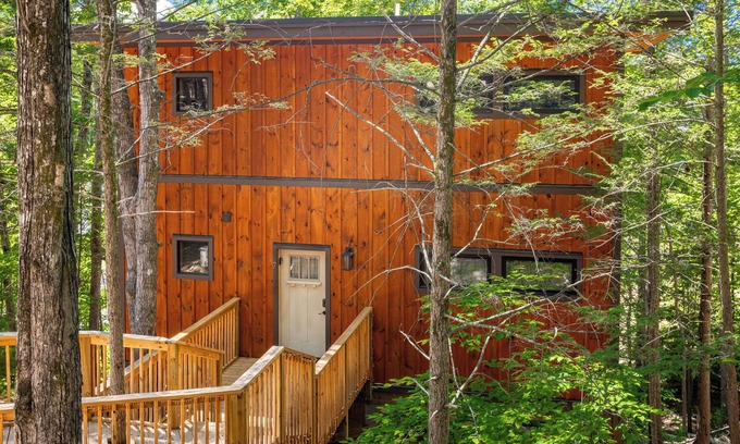 What Makes NEW! Cute, Comfy 2br Treetop Cabin w/Private Hot Tub, Gas Grill, 2 Decks! Perfect for Weddings