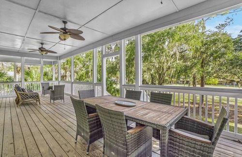 Expansive Wraparound Porch: Bask in the charm of Edisto’s coastal breezes from the generous wraparound porch, offering panoramic views of the surrounding golf course. It's the perfect spot for savoring morning coffee or unwinding with a sunset cocktail.