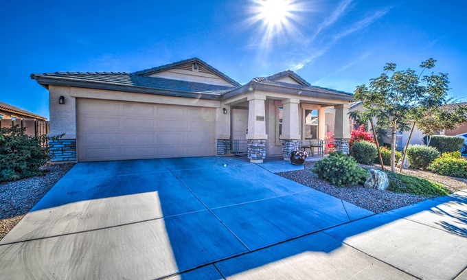 5 year old Executive Home nestled in the West Valley in Buckeye, AZ is minutes from many Cactus League Ballparks, Verado, Victory and Sundance Golf courses, NASCAR, shopping, hiking and more!