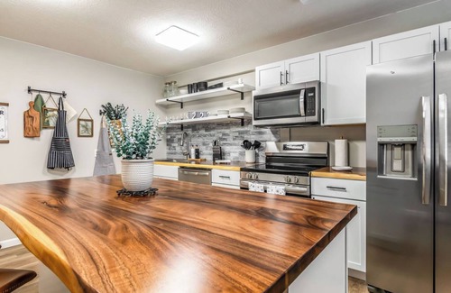 Whether you're looking for a romantic get-away or a Branson family vacation , our rustic Barn located on a 5 acre Apple orchard and Flower Farm is the place for YOU! This restored Missouri barn offers plenty of space with a main level bedroom and a cozy loft bedroom, state-of-the-art kitchen, modern bathroom with a roman shower and open floor plan with large living room and dining room. Enjoy a glass of wine or warm cup of coffee while taking in the nature. A getaway you'll never forget!