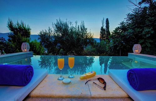 Best-rates for the Kefalonia villa starts from $810 per night with includes Private Pool, Balcony/Terrace, Oceanfront, Sports/Activities, Entertainment, Child Friendly, Laundry, Parking, View, Wellness Facilities, Guest Services, Barbecue/Outdoor Cooking, Air Conditioner, TV, Ocean View, Security/Safety, Bedding/Linens, Fireplace/Heating, Internet, Pool, Kitchen with all other amenities. Perfect for Weddings is committed to ensuring every guest experiences a comfortable and extraordinary stay, whether planning a romantic getaway, a honeymoon, a pet-friendly stay, or celebrating with the entire wedding party.