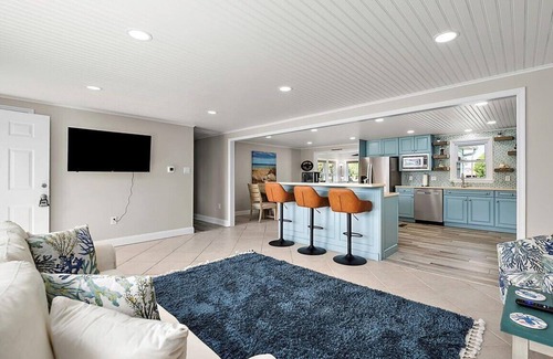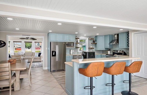 You'll love having access to the canal with a launch area for you SUP's and canoes. Inside this newly updated home, you have a large open living room, dining and kitchen area with an additional living area in the back. There are newer furnishings throughout. The kitchen has been updated with beautiful painted cabinets, tile backsplash, Corian countertops, stainless steel appliances and is ready to make those cost-saving meals at home. Both living areas have TV's so everyone can watch their favorite shows. The bedrooms have new vinyl flooring, Queen Beds and a TV. Both Bathrooms have been renovated and have stand up showers. There is a washer and dryer for guest use, along with a gas grill and of course free Wi-Fi.