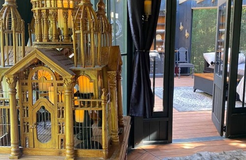 The Cedars not only has a beautiful and comfortable bed for you to rest your head on after a long day of exploring nature, but is over the top when it comes to glamping. It has a large screened in area with an additional day bed overlooking LED candlelit fireplace. This unit comes with a lovely credenza pump sink for all your washing needs, as well as a storage bench with 2 coolers. We've thought of everything. No need for excessive packing, just purchase some food and ice and you're all set! This well appointed space also has a large gorgeous china cabinet decked out with Royal Doulton fine china to eat your meals from. We just took glamping up a notch or two, okay maybe a dozen.