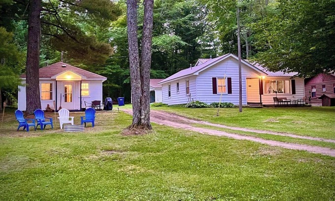 This rental includes 2 CABINS, both Forrest's Cabin and Vivian's Cabin, which are next door to each other and share a common driveway. The cabins are lakefront on Manistee Lake in Kalkaska and both cabins have their own bonfire ring and private dock on Manistee Lake! Provides a great setting for 2 families, an extended family, or a large group (with perhaps men in 1 cabin and women in the other) to come together as a common group, but still have some private space!