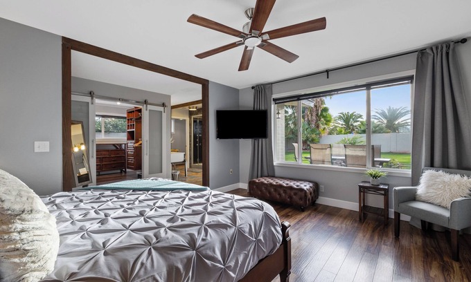 NEW! FOUNTAIN PALMS OASIS HEATED POOL is located in Fontana. NEW! FOUNTAIN PALMS OASIS HEATED POOL provides accommodation, featuring Kitchen, Laundry, Air Conditioner, among other amenities. This House features Kitchen, Laundry, Air Conditioner, to make your stay a comfortable one.