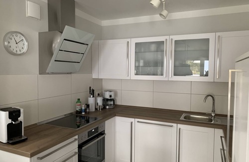 The hallway is separated from the living area, so you can enjoy the peace in the bedrooms, while the breakfast is already prepared in the kitchen. All bedrooms are equipped with electric shutters so you can really sleep "dark". There are 3 bedrooms with double beds available.