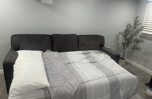 Welcome to our fully renovated 1-bedroom basement apartment in Wayne, NJ! Enjoy a modern kitchen, a comfortable bedroom with ample storage, a pristine new bathroom with essentials, and extra sleeping space for two. Located in a prime spot with on-site parking and excellent accessibility, the apartment features a quiet, tranquil atmosphere, private entrance, large television in both bedroom and living room, Wi-Fi, iPhone chargers,and laundry facilities. Perfect for a peaceful and convenient stay!