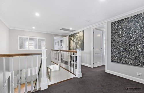 “Hamptons House Resort” styling at its very finest. It is located up a grand staircase with Morning Sunrise Suite situated on your right with a walk in robe, A flatscreen TV -Paramount, and your own bar fridge, where on arrival you will find water, milk, and wine ready to go! There is a shared kitchen downstairs with plenty of room plus an additional bathroom downstairs.