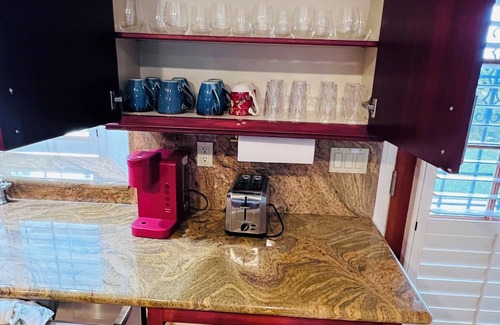 Guests have access to the pool, hot tub, koi pond, and all recreational facilities. Please note, the owner’s personal items are stored in a utility closet and an outdoor shed, which are not available for guest use.
