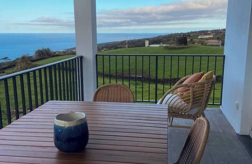 With views of the sea and São Jorge Island, it offers comfort, privacy, and a strong connection to nature. It includes 4 bedrooms, 3 bathrooms in the main house, and a studio with a living area, kitchenette, ultra-comfortable sofa bed, and a bathroom. There is an outdoor area with shared laundry, and extra cribs are available upon request.