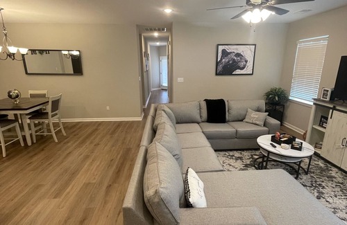 Brand new 3 Bed 2 Bath home located walking distance from Walk Ons, Lit Pizza, and many other restaurants. Minutes from LSU, SU, and BRCC as well as plenty popular destinations in the Baton Rouge area. This home comes with 1 King Bed, 2 Queen Beds, 4 Smart TV's, a fully equipped kitchen, dining room table, washer and dryer in unit, as well as a covered outdoor seating area that sits up to 8 people. The property is easily accessible and in a very quiet/safe neighborhood.