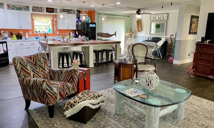 Enjoy your morning or afternoons with spectacular view out patio door. Or sit around the firepit and enjoy the view. less than a mile for all restaurants and boat lifts. Big yard for all you fishermen and their boats/trailers to park. Spacious open concept for kitchen and living area with a 11 ft. island for gathering around feasting on those fish from todays catch. very private back yard for star gazing. Nestled in the little part of south Georgia your for sure to relax and leave all the worries behind... wanna take a break from fishing well Shellmans offers a golf couse within 2 miles.