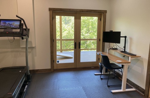 The new Estatoe Oasis sits directly on the South Toe River on 16 private acres - awesome views of the river and Celo Knob. Sleeps 16: ten in upstairs bunk room, six in additional three king bedrooms. Master and upstairs bedroom both have en suite baths. Game room and workout room plus additional bedroom, full bathroom and laundry in basement. Two outdoor decks with fire pit, grill and two picnic tables on upper. Lower deck, with outdoor shower, is adjacent to basement with outdoor games plus a bar, pool table, foosball, karaoke stage and two Xboxes in basement.