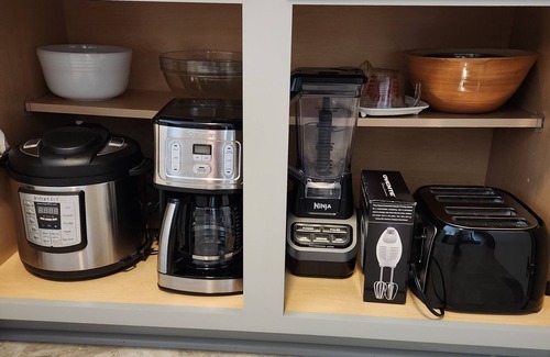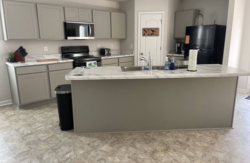 As you enter the keypad front door, you'll be greeted by an open-concept living space that's perfect for entertaining the whole family. The fully equipped kitchen has all the essentials and more to prepare delicious meals for your group. You'll find a basic set of spices to get started and an Insta-pot, Keurig and drip coffee maker, a blender, and crock pot in addition to the standard appliances. The dining area comfortably seats 8 plus a highchair available for your little ones. The living room is simply set up with family games and a Roku TV ready to stream your favorite show after dinner. For those who need to check that one last email or work remotely, our home has high-speed, fiber optic internet.