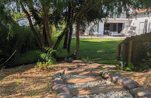 New house with heated pool is located in Arcangues. New house with heated pool provides accommodation, featuring Child Friendly, Internet, Laundry, among other amenities. This House features Child Friendly, Internet, Laundry, to make your stay a comfortable one.