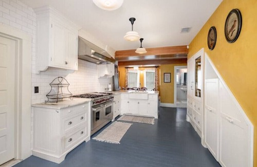 This home was once a local bed and breakfast named the "Sol Risa Inn" so designed to host guests in the bedrooms on the second floor, each with their own bathroom, with shared kitchen, living, dining, and porch areas. Since 1885 this home has had two major renovations, modernizing the home while keeping original hardwood floors, plaster walls and wood trim. The details of this home are incredible as well as the quality of furnishings, linens, and appliances.