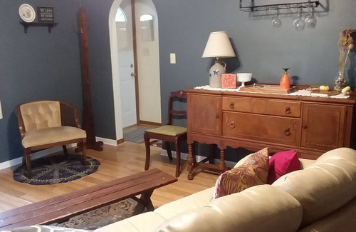 Welcome to a freshened home in the small, college town of Platteville. Whether visiting for work, pleasure or family, maybe hiking the "M", touring locally, to see students, or cycling the trail, this will be a great place to unwind and relax. When not interested in hotel stay, here you will have space to make meals, spread out for sleeping, and visit across rooms. You may relax in the back yard or have coffee on the screen porch. There is ample off street parking. Location is one block off historic "2nd Street", and two blocks from Main St with many shops, restaurants & groceries within walking distance.