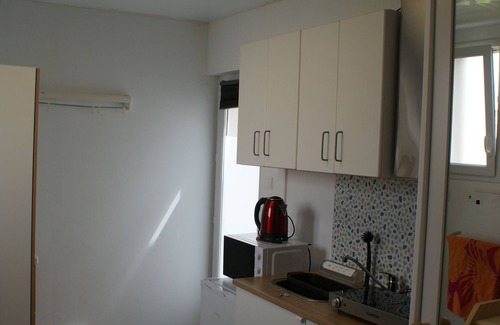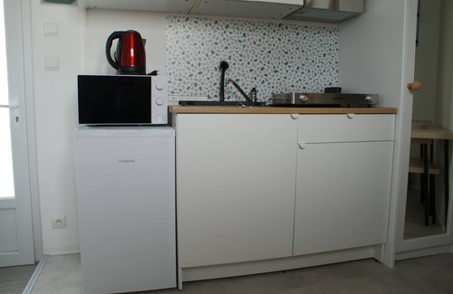 Rental 2 nights minimum for: 1 single person with a child under 10 years old 1 worker on the move. 1 intern Studio fully built in August 2024. comprising on the ground floor: - Kitchenette including 1 fridge, 2 hotplates, 1 microwave, 1 kettle, 1 hood (in progress), 1 sink. - Wall units with crockery - Dressing room with mirror and ironing board. - Closed shower, washbasin + mirror. - Bathroom unit column and under washbasin - Electric towel dryer - Toilet Sanibroyeur with removable partition Upstairs bedroom accessible by 1 quarter-turn staircase - Wifi access. - King size 1 person bed with bedside table and alarm clock. - 1 armchair (extra child's bed) - Smart TV (in the process of purchase). - Desk, 1 coffee table, 1 rack on wheels - Velux with electric blind upstairs - Wall mirror Outside - Shared garden with picnic table, swing, trampoline, In owner's house with independent entrance and key box.