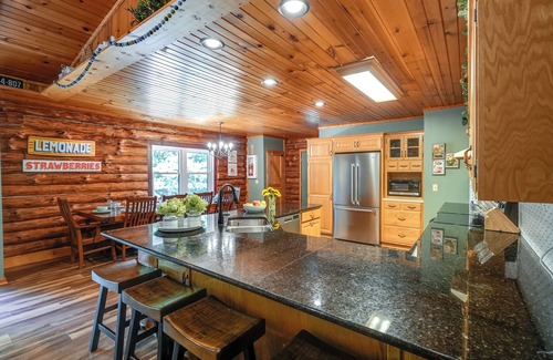 Your stay at this charming log cabin will be filled with delightful amenities designed for fun and relaxation. The indoor pool serves as a stunning centerpiece for gatherings, while the game room provides entertainment for guests of all ages with classic arcade games, ping pong, and air hockey. Enjoy family meals around the impressive Amish-built oak table in the fully stocked kitchen, or share stories by the fireplace as the night draws to a close. With four bedrooms and three baths, accommodations are ample, allowing up to 14 guests to feel right at home during your wedding festivities.