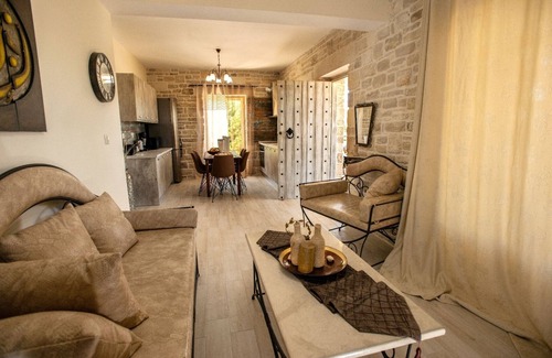 If you need a refreshment after waking up in this comfortable natural stone villa, you can dive straight into the Libyan Sea in just a few steps.