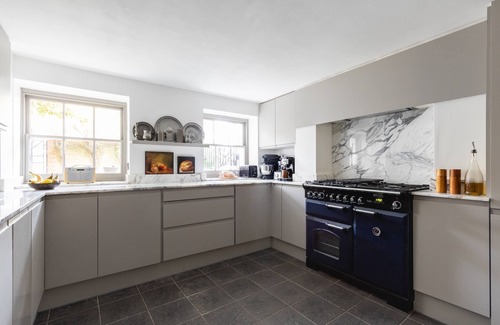 An exceptionally stylish and comfortable home in the capital, New Kent Road offers the warmest welcome for up to six guests. Boasting a central location, this immaculately presented London townhouse is just over a ten-minute walk to the nearest tube station, allowing guests to access the wider city with ease. Explore the vibrant neighbourhood of Bermondsey, finding your favourite artisanal bakery for morning pastries and loaves. Enjoy leafy riverside strolls on the South Bank, browsing the popular antique markets before feasting your eyes on the contemporary art at the striking Tate Modern. Cross the River Thames at the iconic Tower Bridge, less than a 30-minute stroll from New Kent Road, and visit the Tower of London to marvel at the glittering Crown Jewels Exhibition and famous ravens. Nothing could be better than curling up on the living room's plum velvet sofas, feeling wonderfully snug thanks to deep blue statement walls, a cosy fireplace and soft furnishings that reflect the owner's background in interior design. The modern kitchen is spacious and light and boasts a generously sized range cooker to delight any aspiring chef. Stock up on fresh produce at the bustling Borough Market, whip up a feast and dine in the elegant and spacious dining room. Discover three contemporary bedrooms, sophisticated with cool greys and rustic earthy tones. The primary bedroom impresses with a super king-size bed and an unforgettably chic ensuite, with a freestanding tub and delightful shuttered windows. A second ensuite bedroom has a king-size bed, while the third bedroom has a double bed and access to a sleek bathroom with a deep soak tub and elegant marble accents. An enchanting walled garden awaits you for summer evenings of al fresco dining on the private terrace. Exquisite finishes, a desirable location and the joy of a secluded outdoor space make New Kent Road a hidden gem in the heart of London.