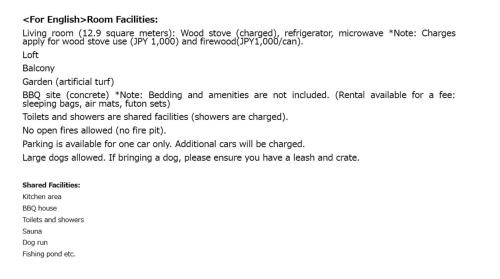 New Kurumi Land - Vacation STAY 41992v offers accommodations in Kamigahora, 18 miles from Takayama Station and 20 miles from Hida Minzoku Mura Folk Village. The property is around 29 miles from Gero Station, 19 miles from Sakurayama Hachiman Shrine, and 19 miles from Fuji Folk Museum. The campground features both free Wifi and free private parking. The accommodation is non-smoking. Yoshijima Heritage House is 19 miles from the campground, while Takayama Festival Float Exhibition Hall is 19 miles from the property. Matsumoto Airport is 57 miles away.