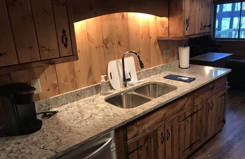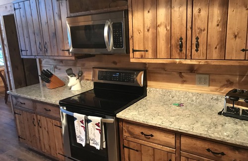 We provide: 8 sets of towels and bedding, basic pots and pans, dishes and utensils, garbage bags, toilet paper, a few rolls of paper towels. The complete kitchen is equipped with a fridge/freezer with ice maker, dishwasher, electric oven/range, microwave, toaster, Keurig coffee machine, drip coffee machine, dish and dishwasher soap. There is a stack of firewood for the fire pit.