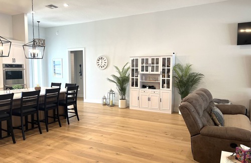 INDOOR LIVING: Open layout, wood floors, all new furniture (including all mattresses), Nine flat-screen Smart TVs, large dining table, Kitchen Island that seats 6, pool table, and more...