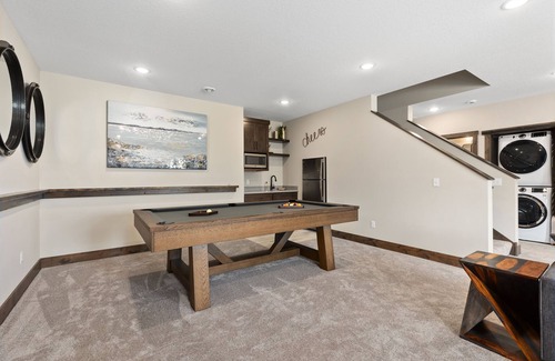 Read for entertainment? A spacious family room is located on the lower level, including a game room with a card and pool table. Snuggle up with your favorite movie or watch your favorite sports team in the living area with many different seating arrangements, a flat-screen TV, and a fireplace. There is plenty of room to spread out and relax. You will also find a bedroom with 2 bunks and a double guest suite with two king beds and a private connecting bathroom. The lower level has a common bathroom, washer, and dryer.