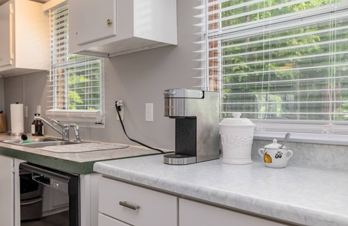 - Private lakefront hideaway with dock, swing bench, remote work desk, & AC