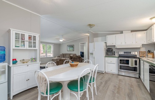 Relax and recharge at this 3-bedroom, 2-bath lakefront retreat with an open upper dock perfect for soaking in the view. Enjoy kayaking, spacious indoor living with a fully stocked kitchen, and a cozy living room with smart TV. The master suite features a king bed and private bath, while kids will love the bunk room that sleeps 4. A third bedroom with a queen offers lake views. Step out onto the deck for fresh air and outdoor dining. Great times.