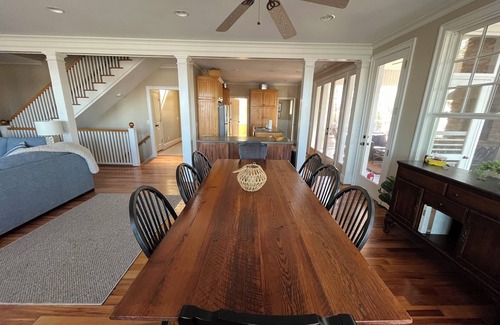 New ownership!! This home was a previous VRBO with consistent reviews of 9s and 10s! This architect designed, 3 story lakefront home is situated on a bluff with expansive views of beautiful Lake Murray. With 7 bedrooms, 5.5 baths and close to 4000 square feet, This home sleeps 15 and offers plenty of space and privacy for multiple families. The main level consists of a living room with large screen TV, dining area, a well stocked kitchen, primary suite with private bath, as well as a half bath and laundry room just off the kitchen. In the dining room you will find a large table that comfortably seats 8-10 with additional seating for 5 at the kitchen island. The upper level has 4 spacious bedrooms: 3 queens and 1 full. 2 of the queen bedrooms have their own private full bath, the remaining 2 bedrooms share a full bath. Downstairs on the bottom floor you will find an inviting second living space complete with TV, ping pong table, another full kitchen, a queen bed room and a room with two twins and bunk beds that share a full bathroom. Enjoy the natural beauty of the South Carolina mid-country while enjoying the rocking chairs on 1 of 2 gorgeous Charleston-style wrap around porches on the main and lower floors, as well as a beautiful screened-in porch with floor-to-ceiling stone fireplace for those cool South Carolina fall and winter nights. Massive windows on all levels highlight the amazing big water views from almost every room with the main bedroom and two bottom level rooms each having private access to their respective floor's porches. Every room contains a ceiling fan and each level of the home has its own heating and A/C unit. If the inside amenities aren't enough, enjoy your stay via the home's private lot immediately next door - take your pick of lounging in the sun, enjoying a friendly game of volleyball on your own private sand court or shooting a few hoops on the basketball goal. For those wishing to bring or rent a boat, the property comes with access to 2 private docks, each having approximately 18 feet of water depth at low lake levels and 30 feet at full pool. The lot provides ample parking and extra space (boats, cars, jet skis, etc) for guests as well. An ideal retreat for families, small groups or corporate rentals. We invite you to relax and unwind with us in this private and spacious getaway on the water!